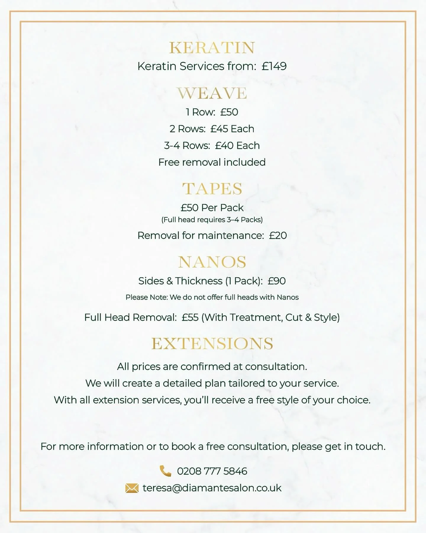 Diamante is a friendly, vibrant salon with a relaxed feel. Our prices are highly competitive allowing you to treat yourself more often, after all, what is life without a little treat! Relax in our recently refurbished waiting area, have a complimentary drink and enjoy the latest magazines. Our accomplished stylists will make sure you leave our salon in flawless style.